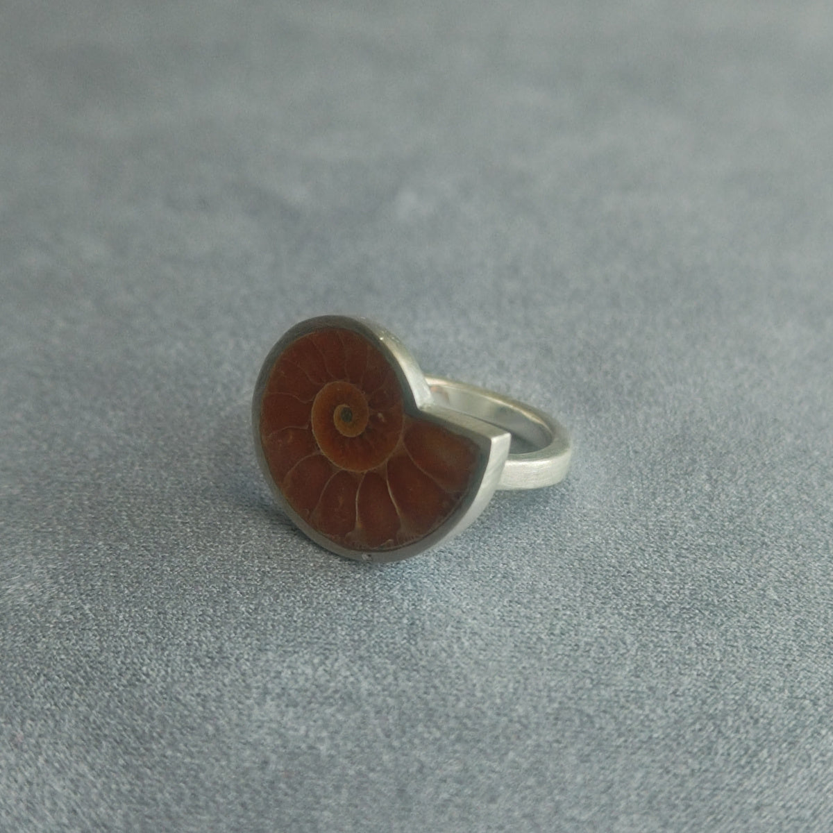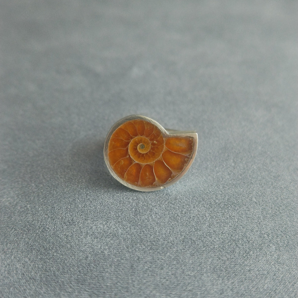 SV925マット仕上げの静かな輝きが、アンモナイトの表情を穏やかに引き立てます。
